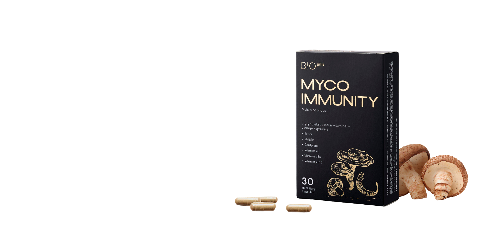 MYCO IMMUNITY su grybų ekstraktais, 30 kaps.